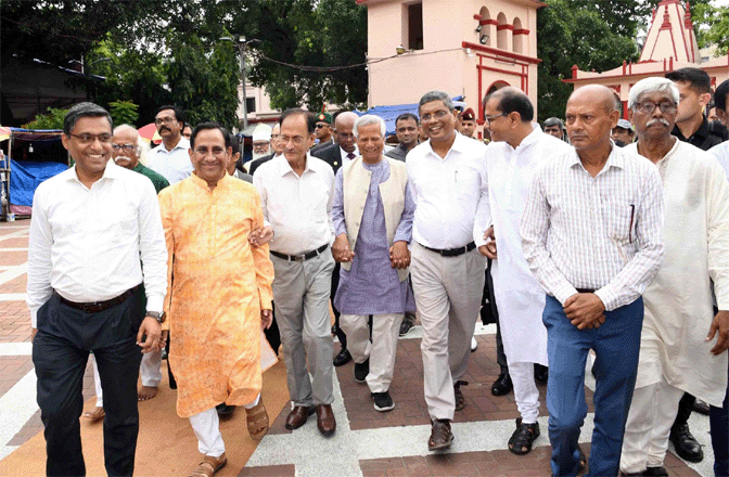 আজ দুপুরে সনাতন ধর্মাবলম্বীদের জাতীয় উপাসনালয় রাজধানীর ঢাকেশ্বরী মন্দির পরিদর্শনকালে তিনি এসব কথা বলেন। এ সময় আইন, বিচার ও সংসদ বিষয়ক মন্ত্রণালয়ের উপদেষ্টা ড. আসিফ নজরুল ও ধর্ম বিষয়ক মন্ত্রণালয়ের উপদেষ্টা ড. আ. ফ. ম. খালিদ হোসেন এবং সনাতন ধর্মাবলম্বীদের শীর্ষ নেতৃবৃন্দ উপস্থিত ছিলেন। এ সময় হিন্দু সম্প্রদায়ের নেতাদের সঙ্গে নিয়ে প্রধান উপদেষ্টা মন্দিরের বিভিন্ন স্থাপনা ঘুরে দেখেন।